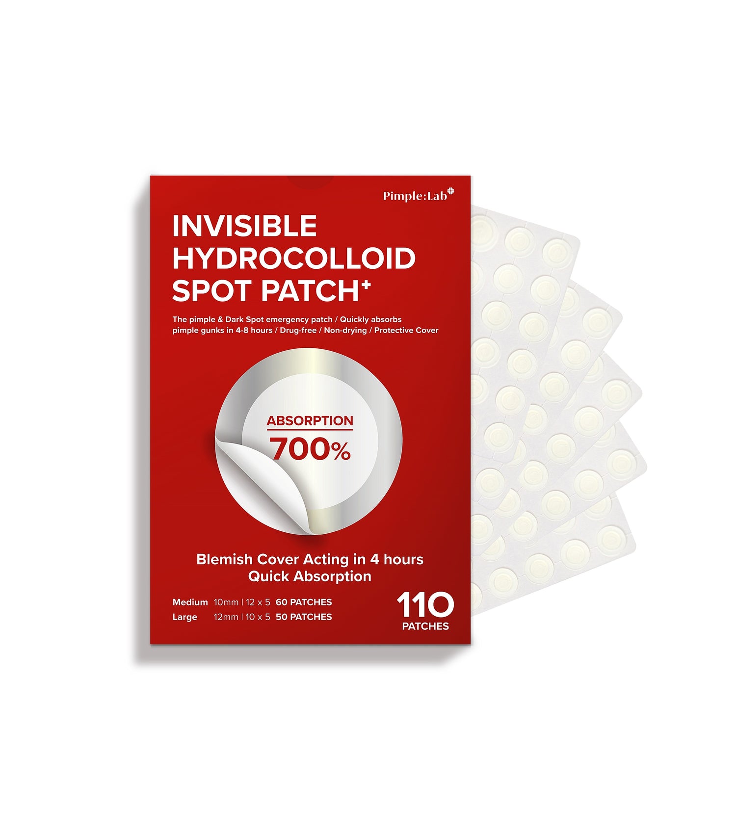 Heal faster with Pimple Lab®! With 700% absorption, our patches speed up recovery while Madecassoside & Tea Tree soothe and balance skin. Waterproof, sweatproof, and ultra-thin for all-day invisible healing.